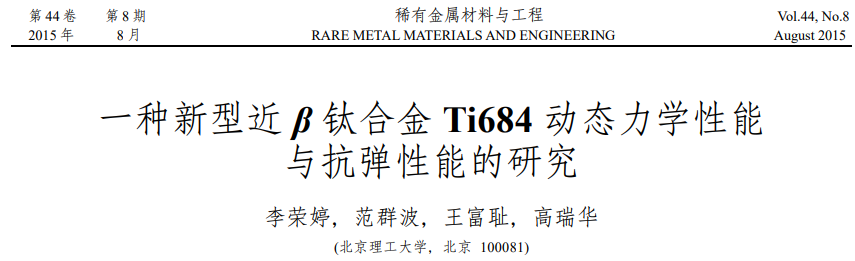 文献5(2015):一种新型近 β 钛合金Ti684 动态力学性能与抗弹性能的研究(Dynamic Mechanical Properties and Ballistic