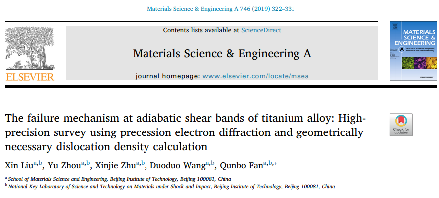 文献2(2019):The failure mechanism at adiabatic shear bands of titanium alloy: High-precision