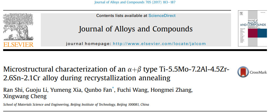 during recrystallization annealing(再结晶退火过程中α+β型Ti-5.5Mo-7.2Al-4.5Zr-2.6Sn-2.1Cr合金的组织特征)