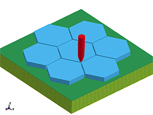模拟研究了当制式弹击中两块陶瓷片的拼缝处时,复合结构装甲薄弱区域的防护性能